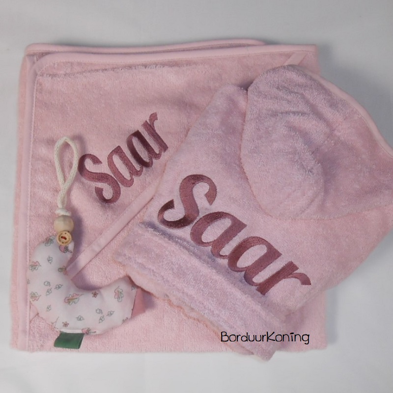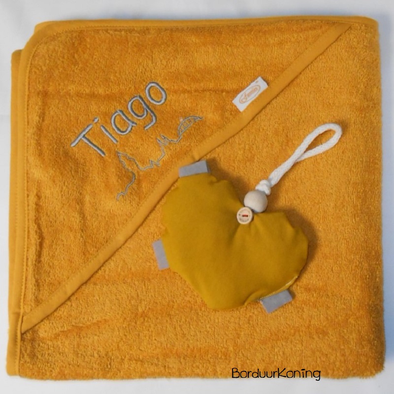 Wikkeldoek (bad cape) met naam borduren naar wens.
