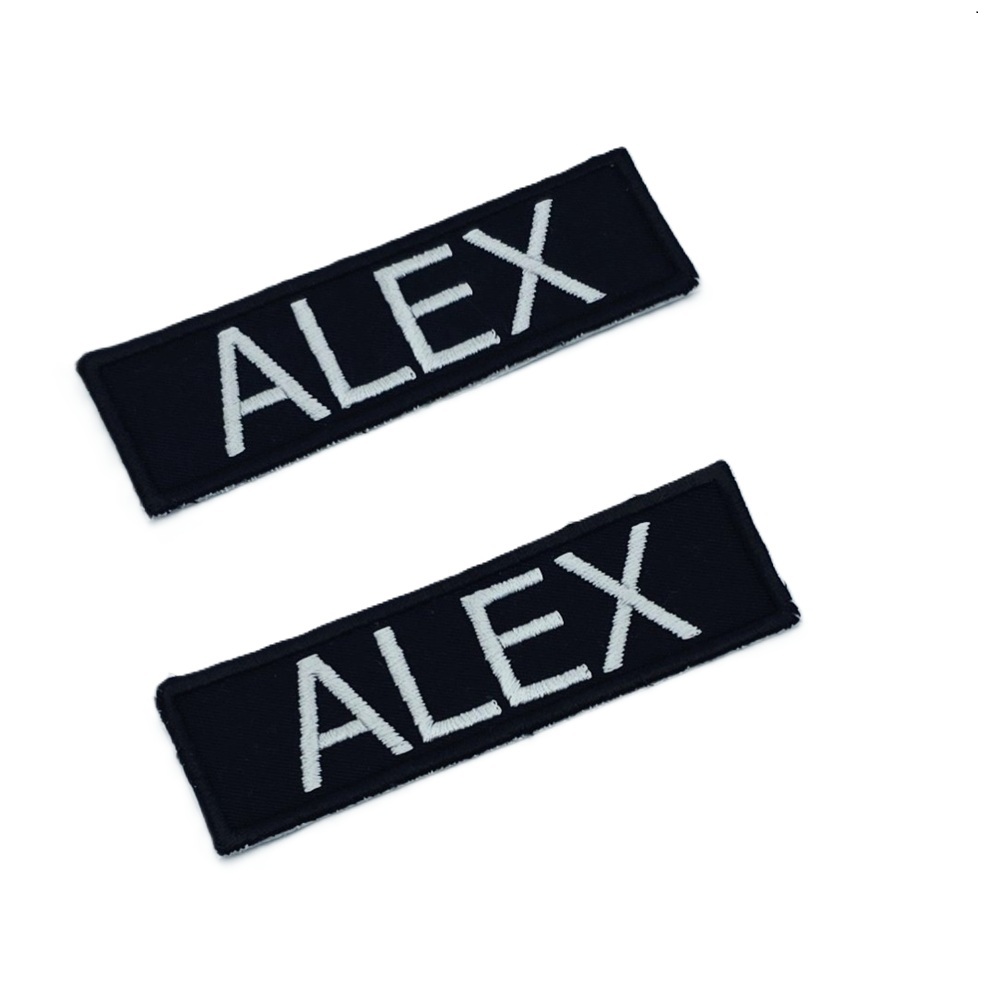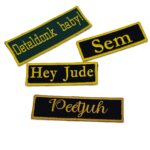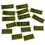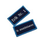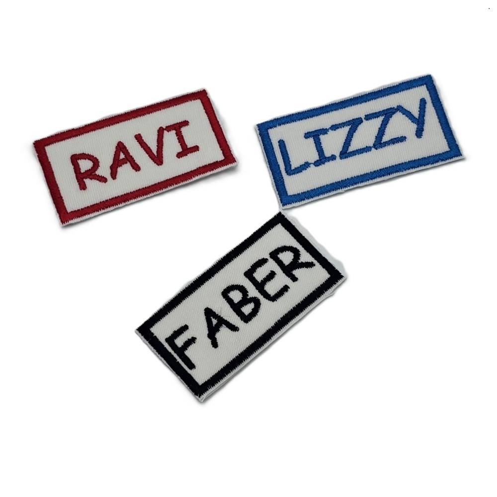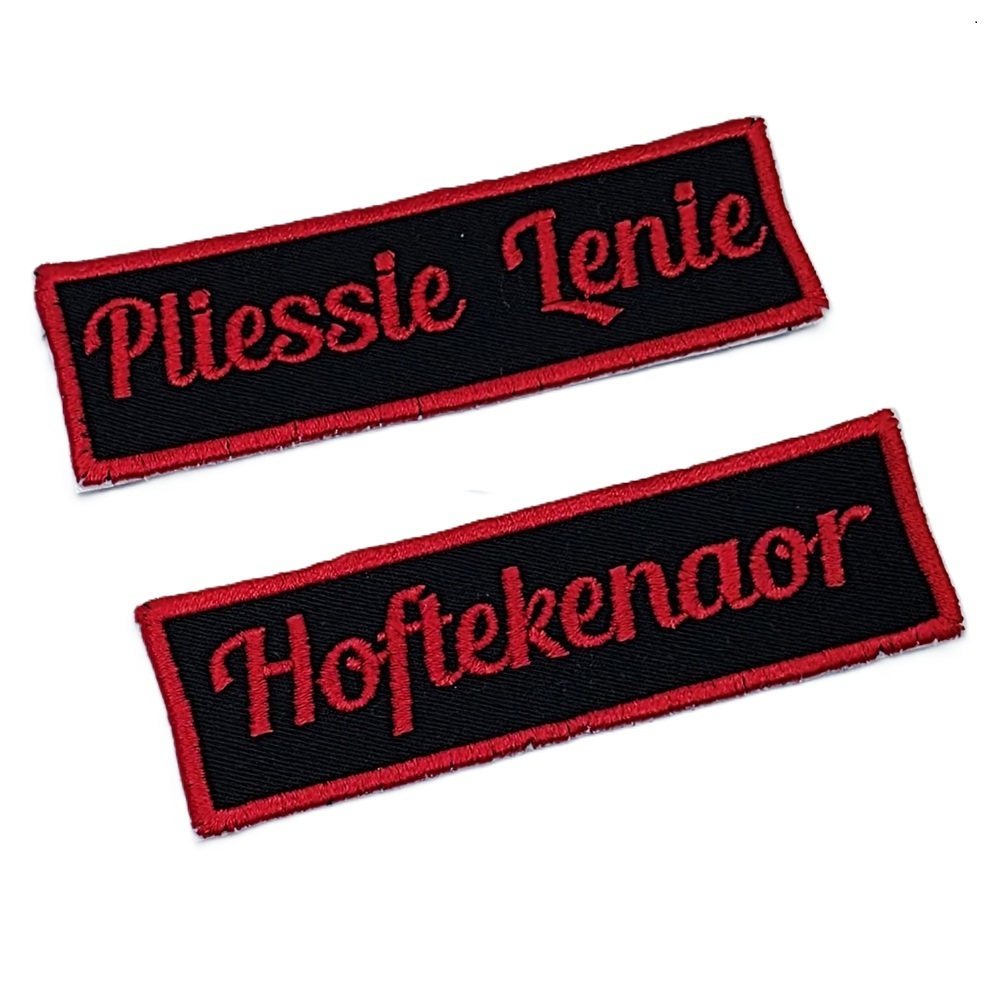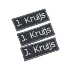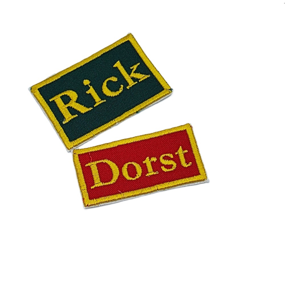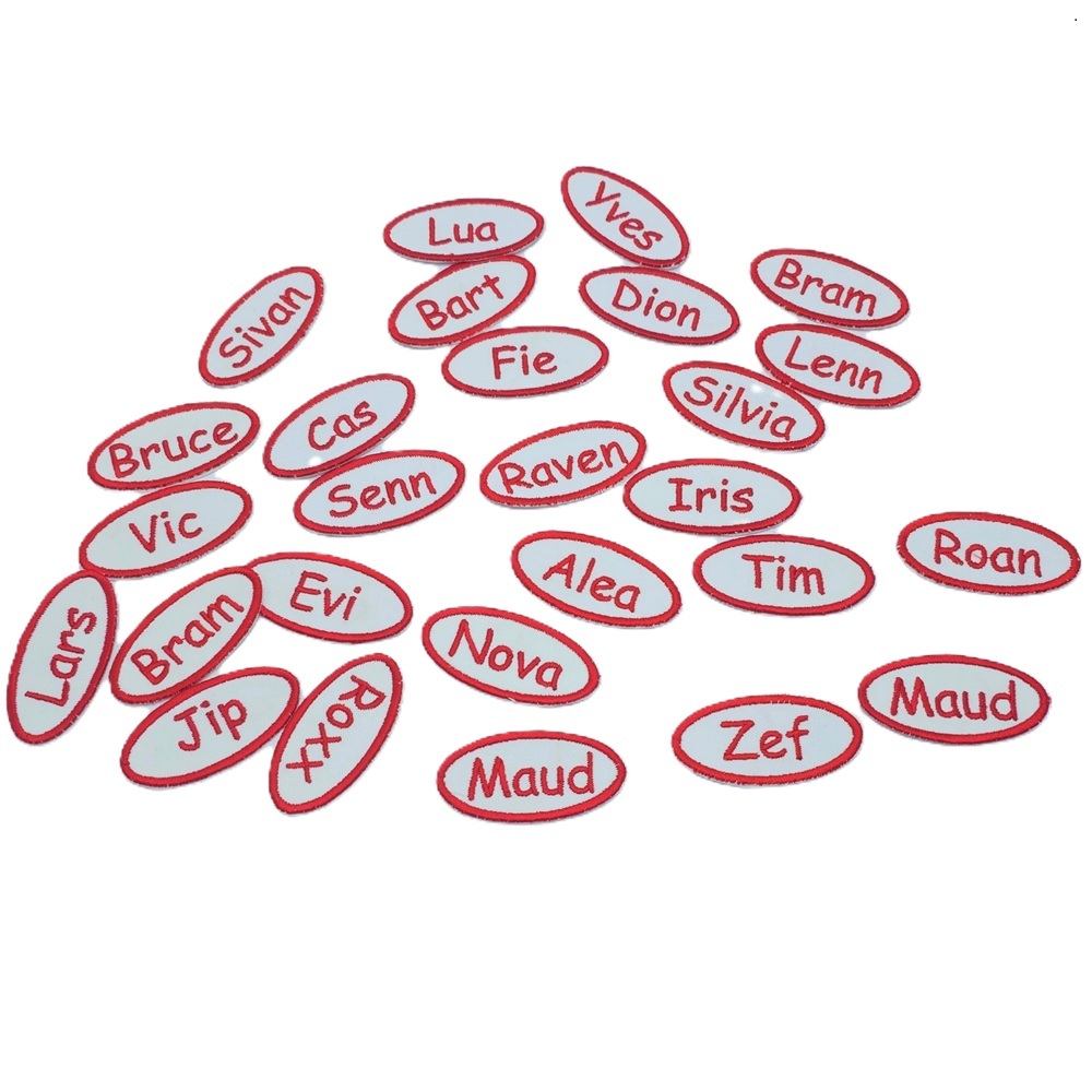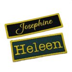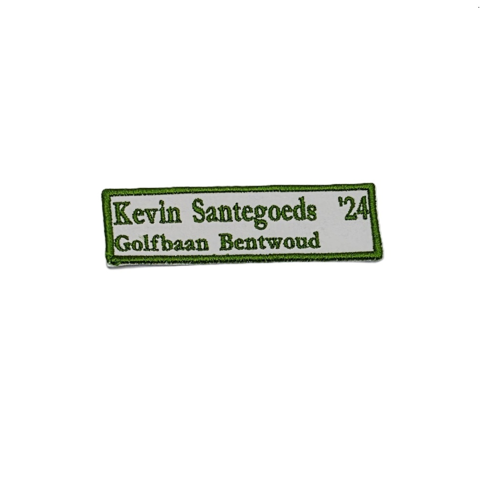 -Naam badges worden alleen op badge stof geborduurd.