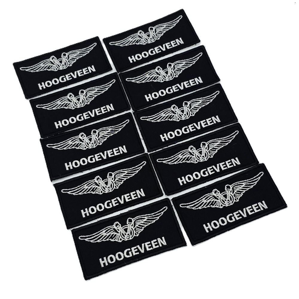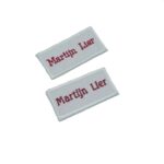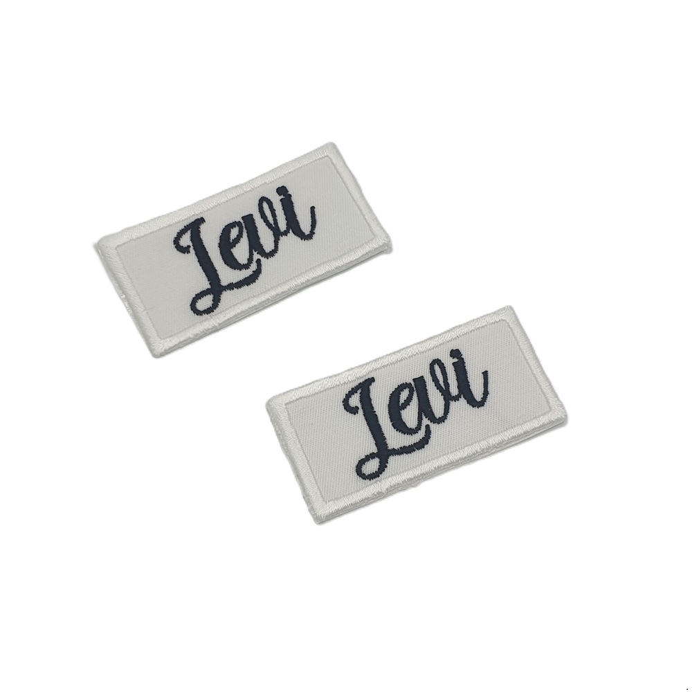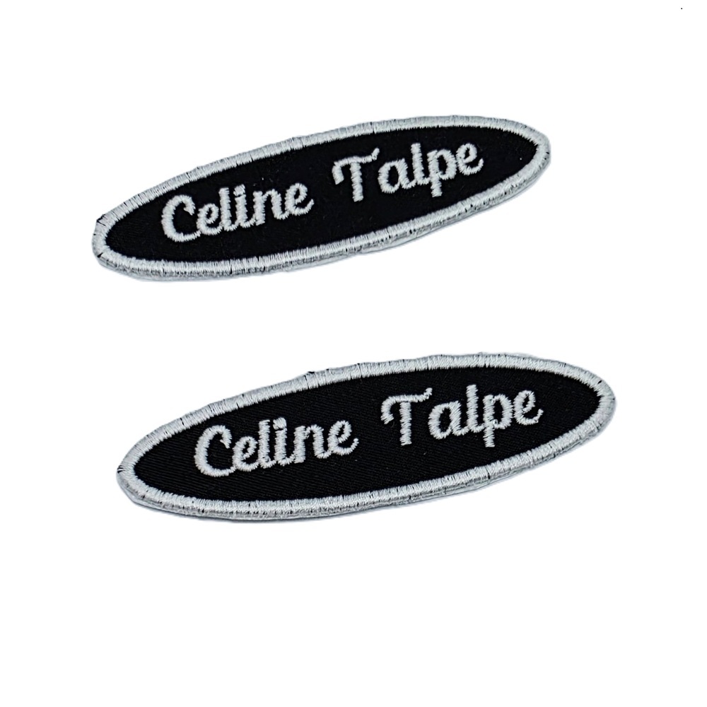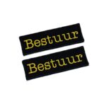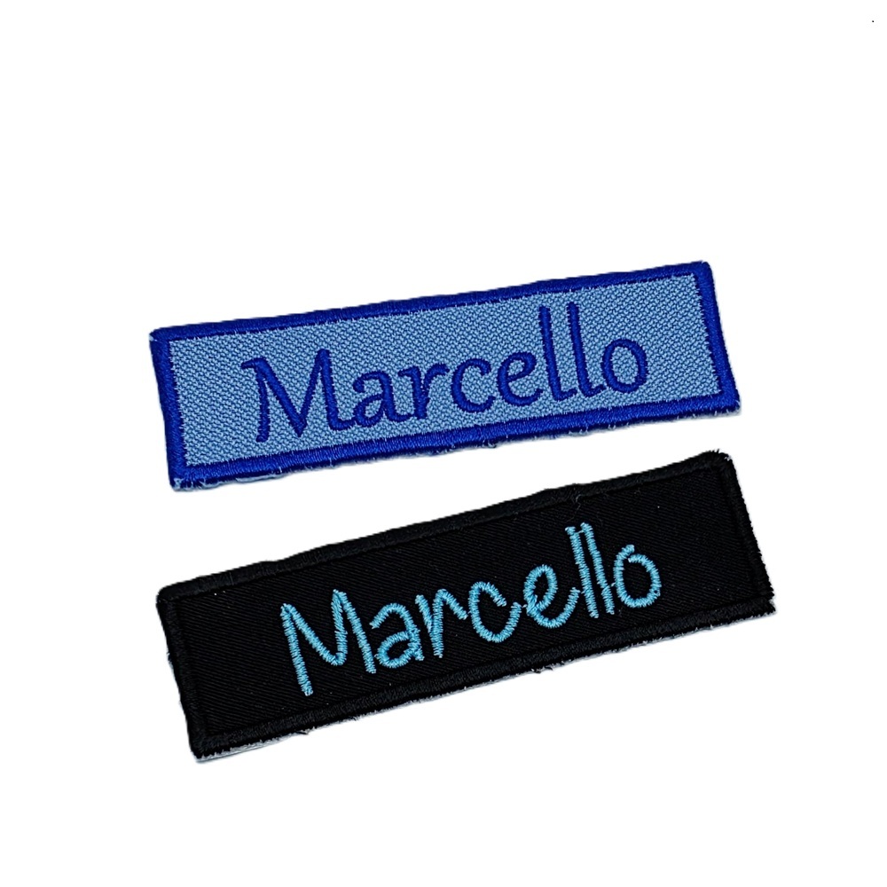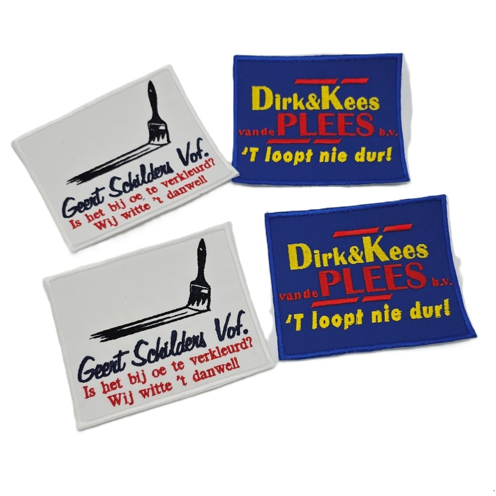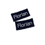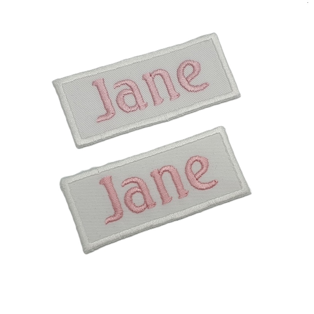 -Naam badges worden alleen op badge stof geborduurd.