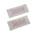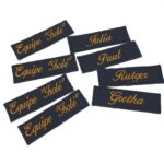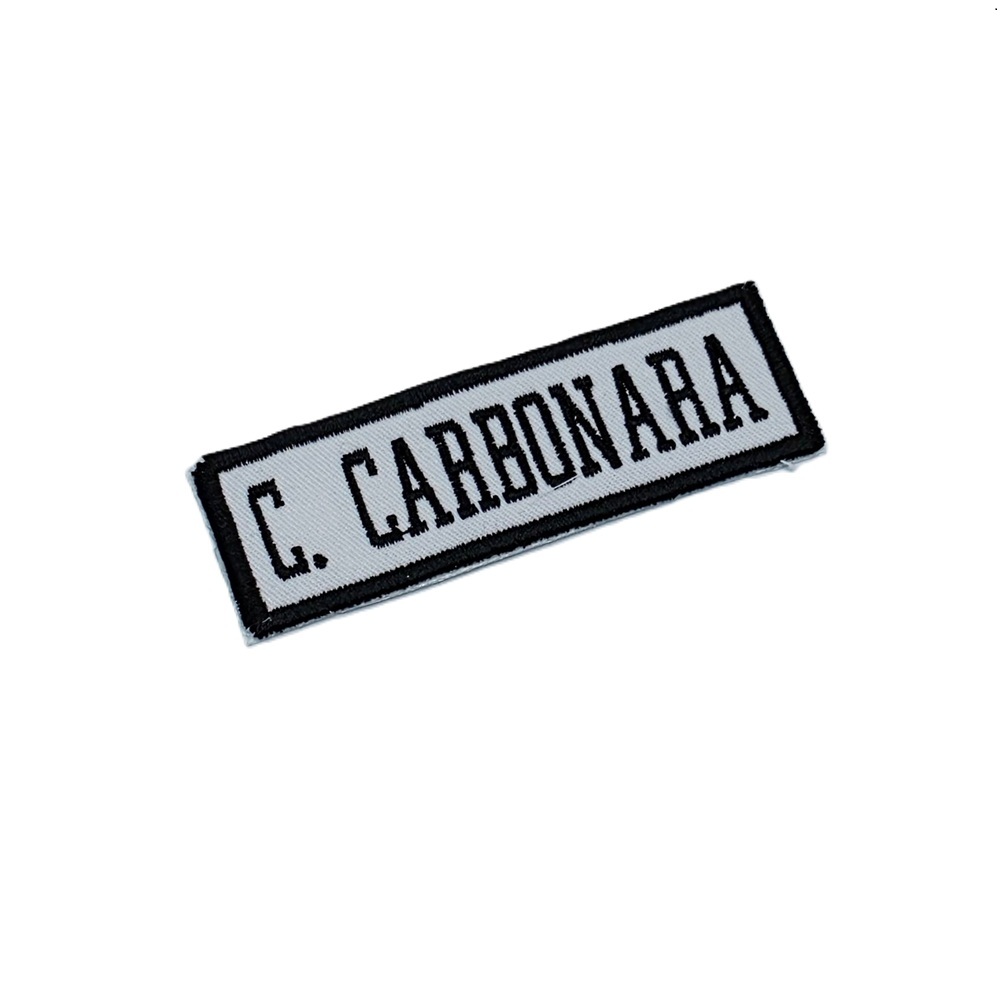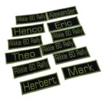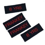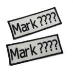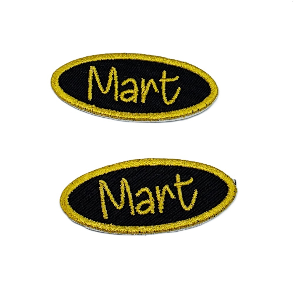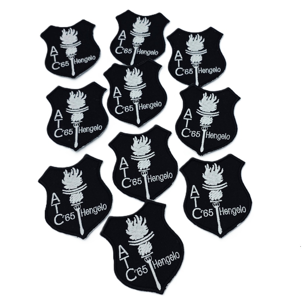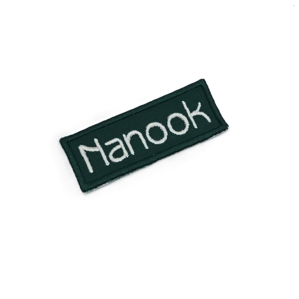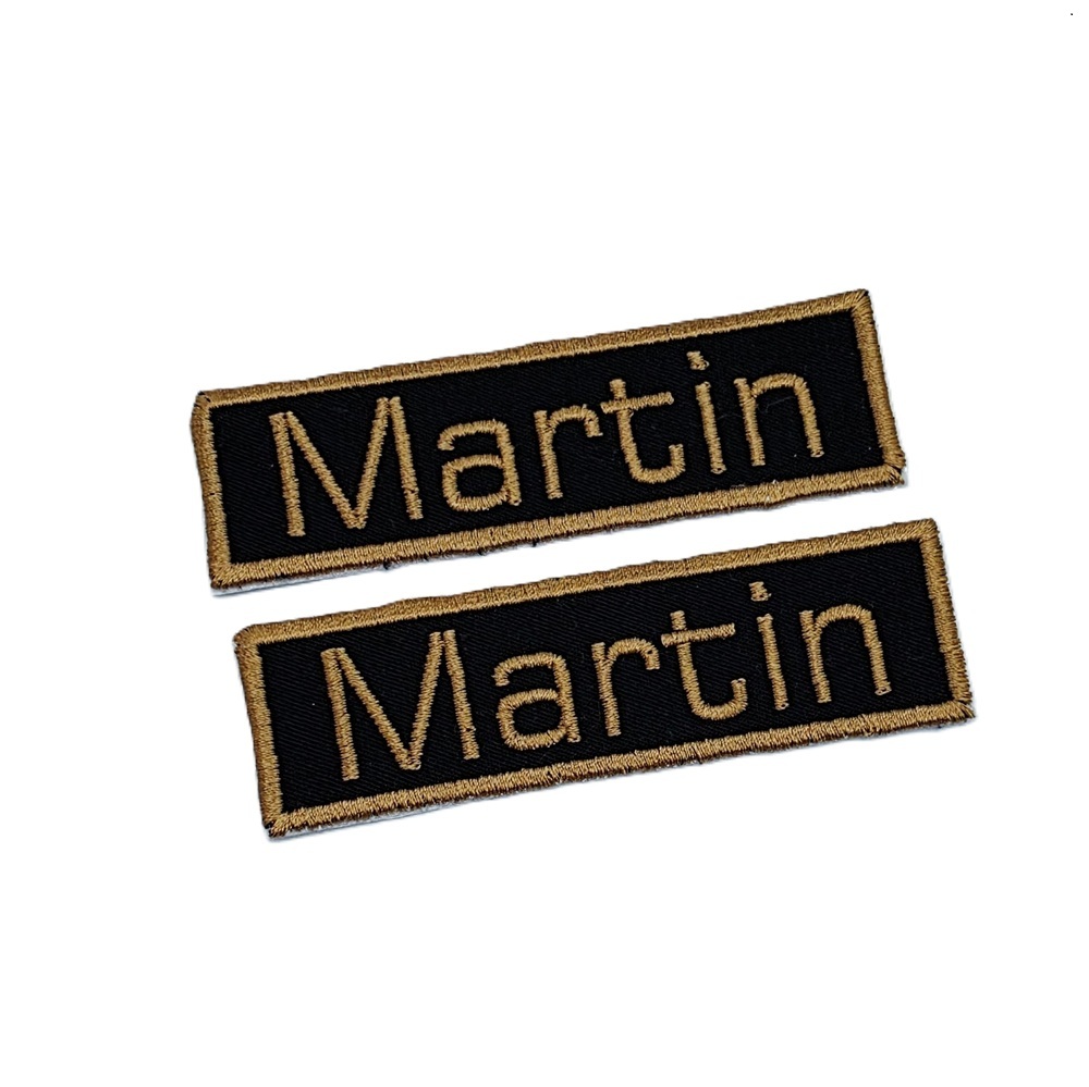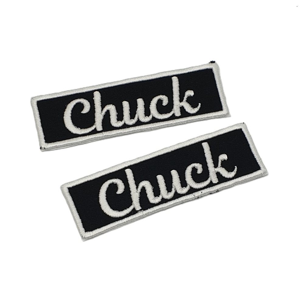 -Naam badges worden alleen op badge stof geborduurd.