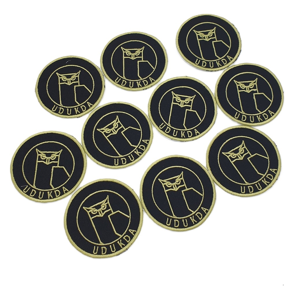 -Ovaal: van 5 tot 12 cm. - De gewenste kleur van de badge stof: zwart, wit, grijs, donkergrijs, groen, geel, rood, donkerblauw of royal blauw.