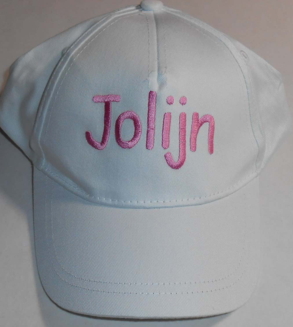 Wilt u de naam van het kind (bijvoorbeeld een peuter) mooi op de pet laten borduren? Kies dan in de shop de gewenste kleur, het lettertype, vul de naam van het kind in en rond uw bestelling af.