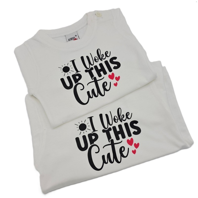 T-shirtje kleur wit maat 68 of maat 80 met een leuke print bedrukt I woke UP THIS Cute