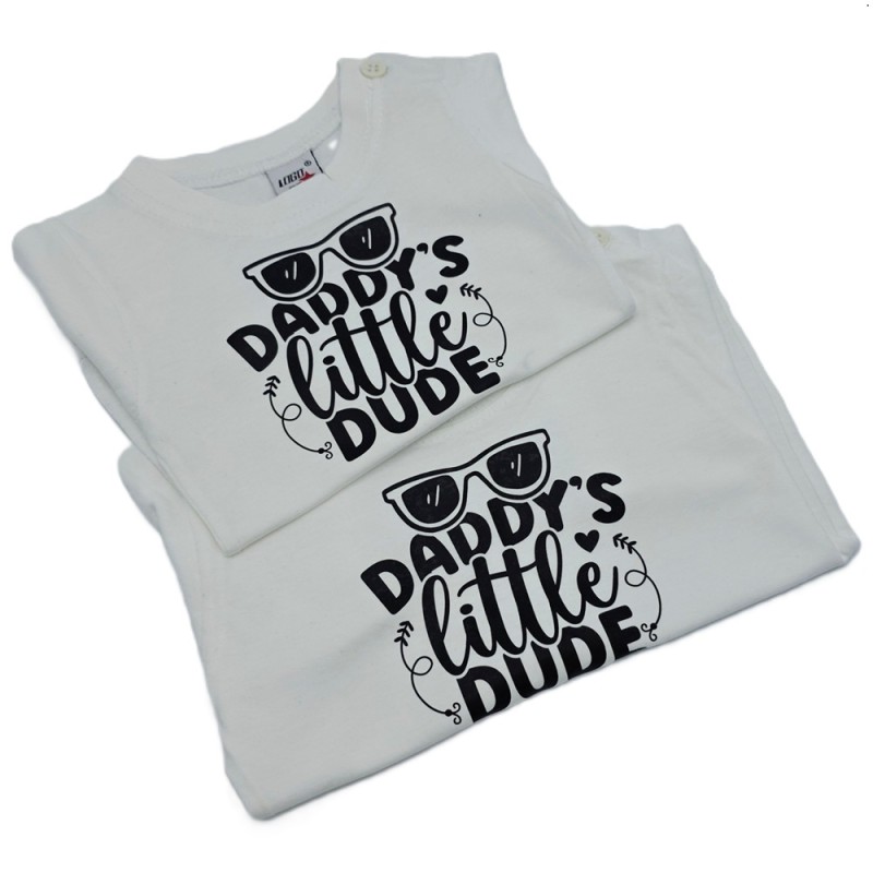 T-shirtje kleur wit maat 68 of maat 80 met een leuke print bedrukt Daddy's little dude