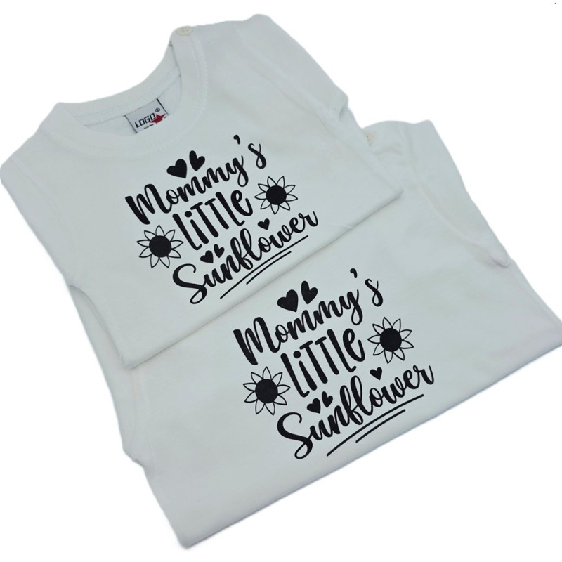 T-shirtje kleur wit maat 68 of maat 80 met een leuke print bedrukt Mommy's little Sunflower
