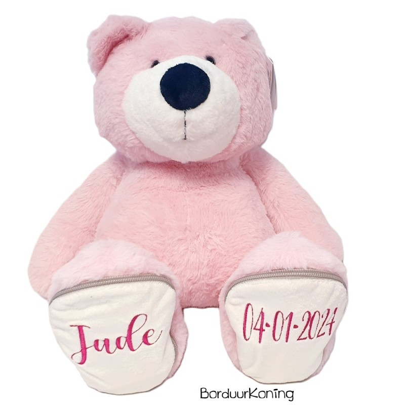 Knuffelbeer roze met afneembare voetjes die gepersonaliseerd kunnen worden
