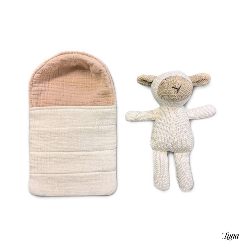 Een slaapvriendje deze knuffel heeft de naam Luna schaapje wit beige van kleur.