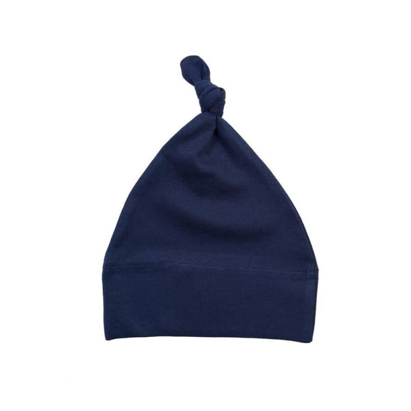 Babymuts knoop donkerblauw, losse verkoop of met naam borduren.