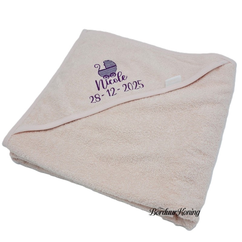 Badcape blush afmeting 100 x 100 cm losse verkoop of met borduurwerk.