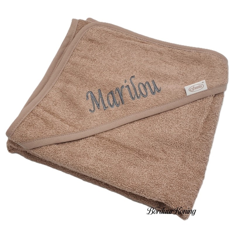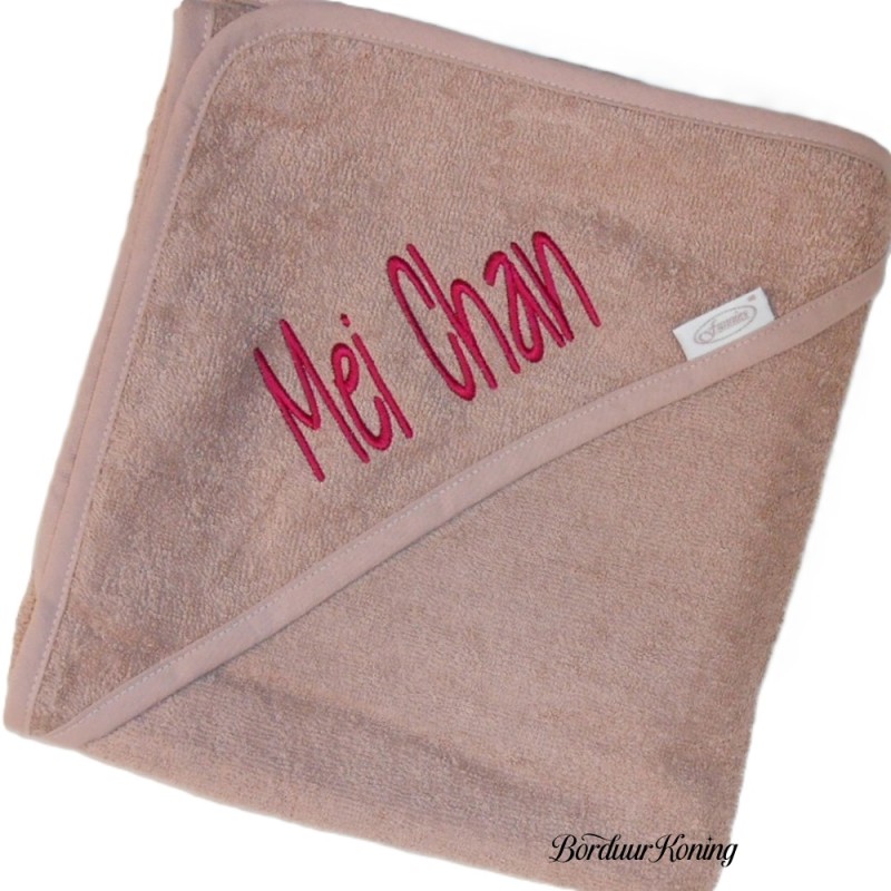 Badcape pinkstone afmeting 80 x 80 cm losse verkoop of met borduurwerk.