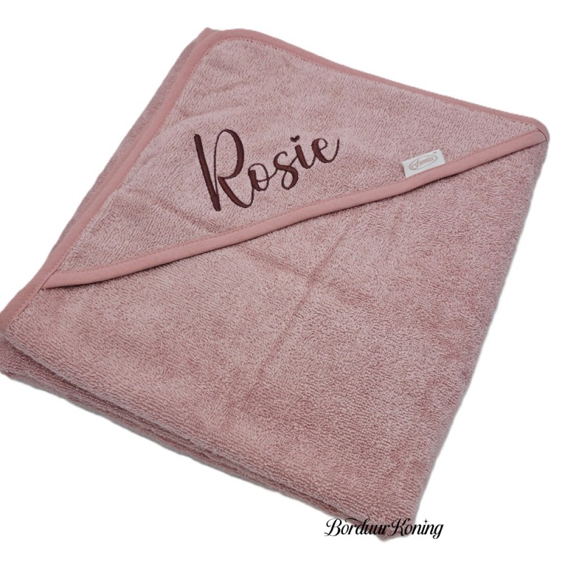 Badcape rosee afmeting 100 x 100 cm losse verkoop of met borduurwerk.