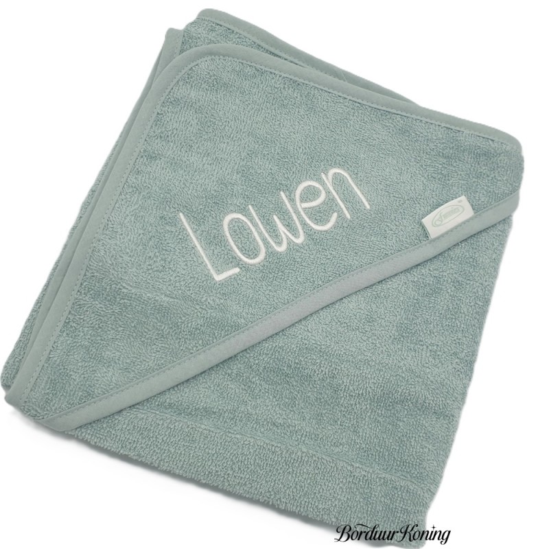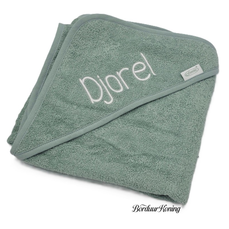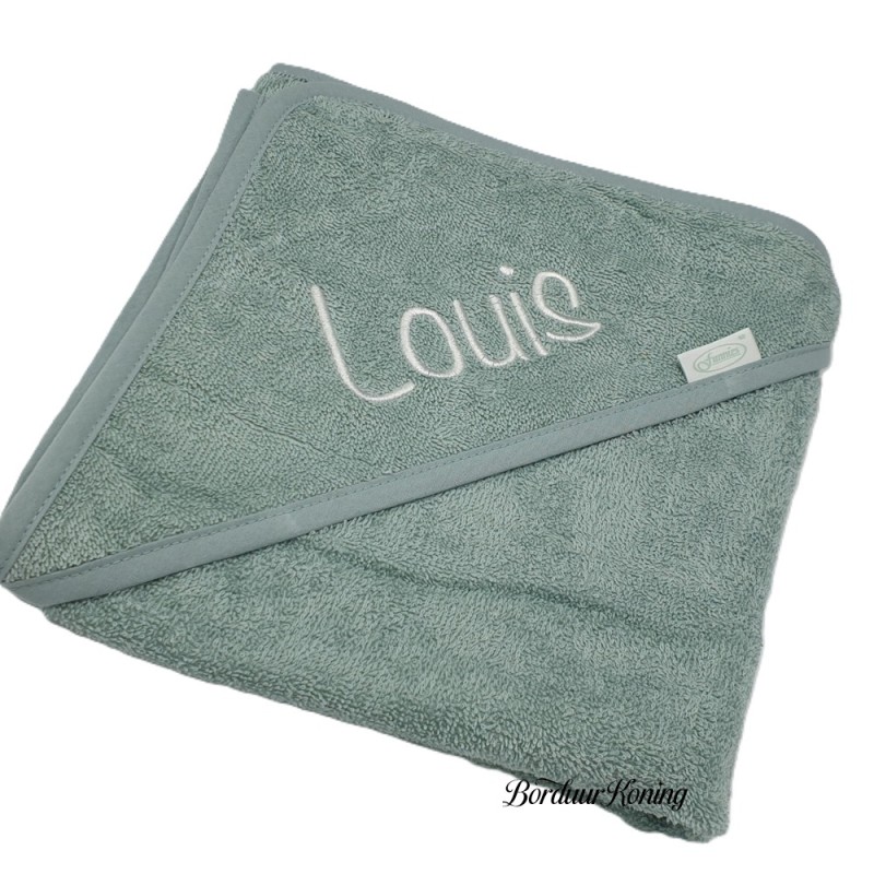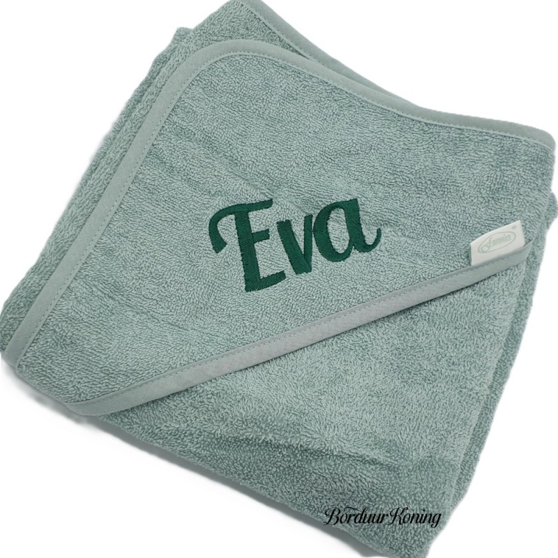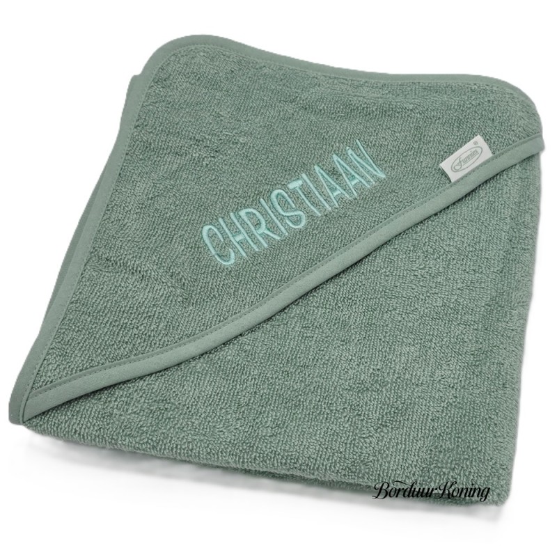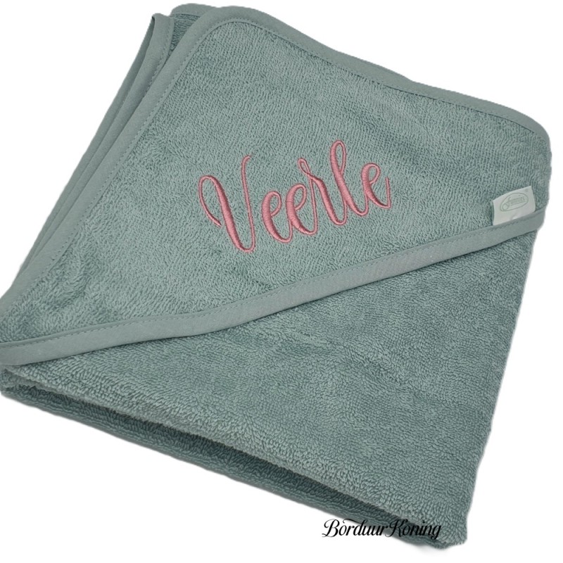 Badcape stonegreen afmeting 80 x 80 cm losse verkoop of met borduurwerk.