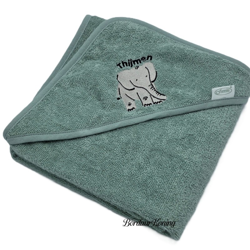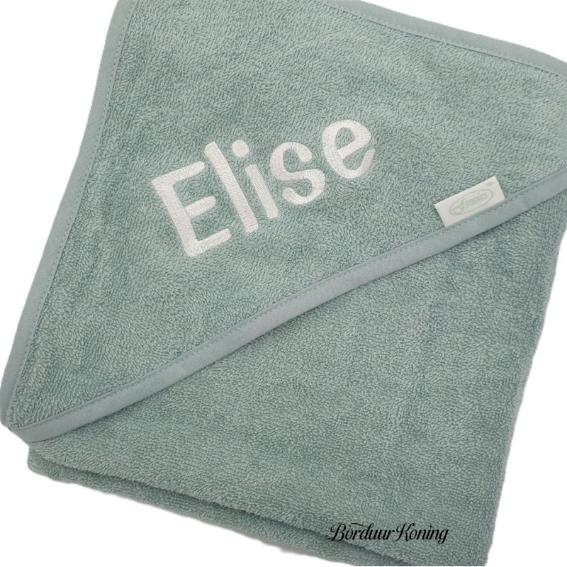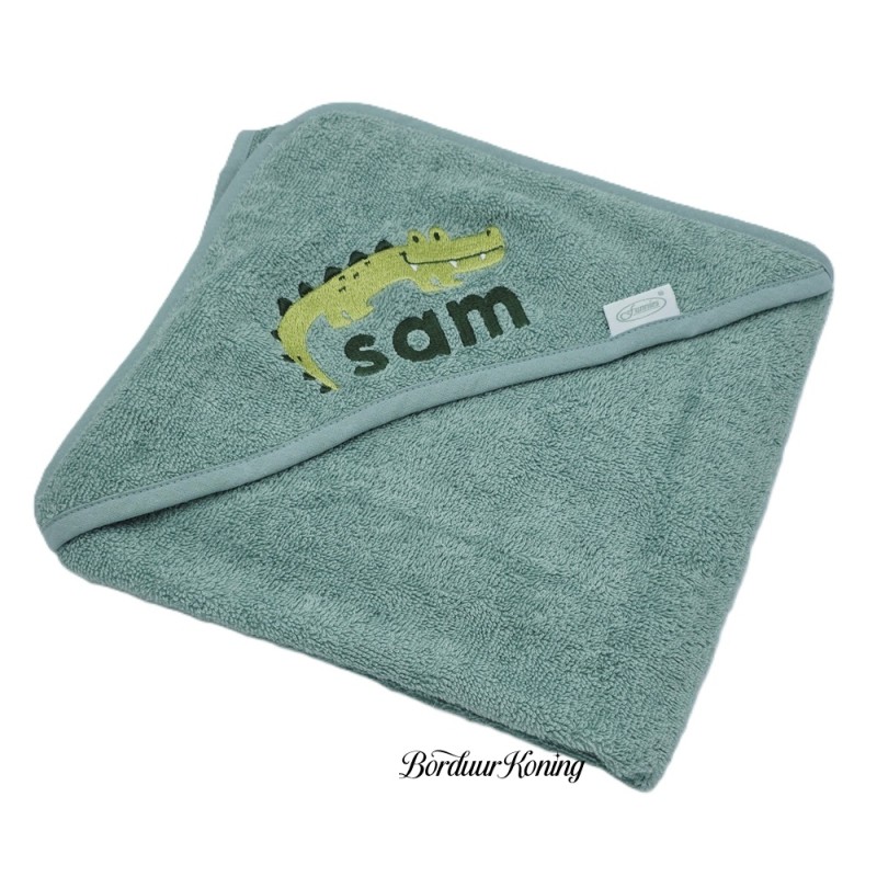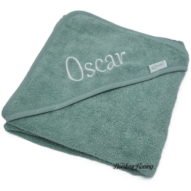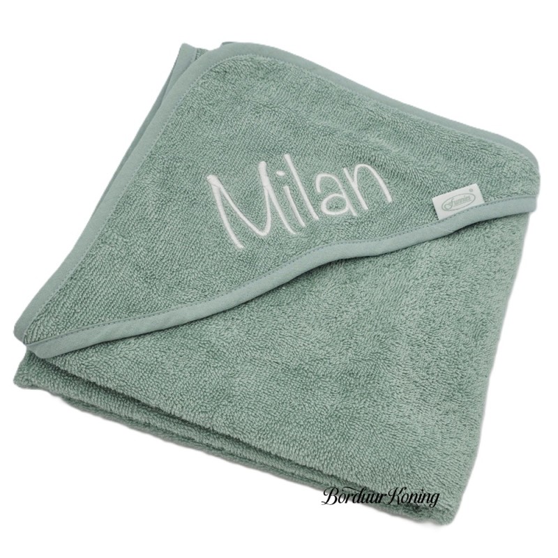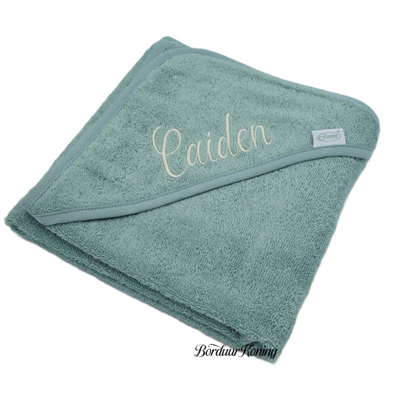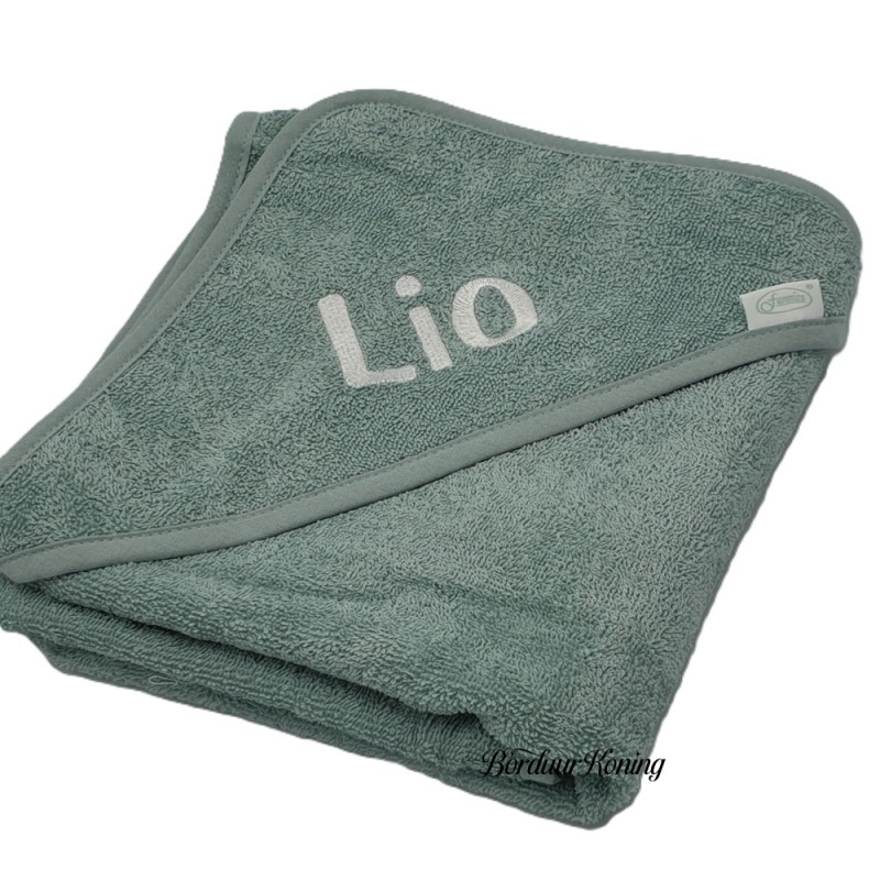 Badcape stonegreen afmeting 80 x 80 cm losse verkoop of met borduurwerk.