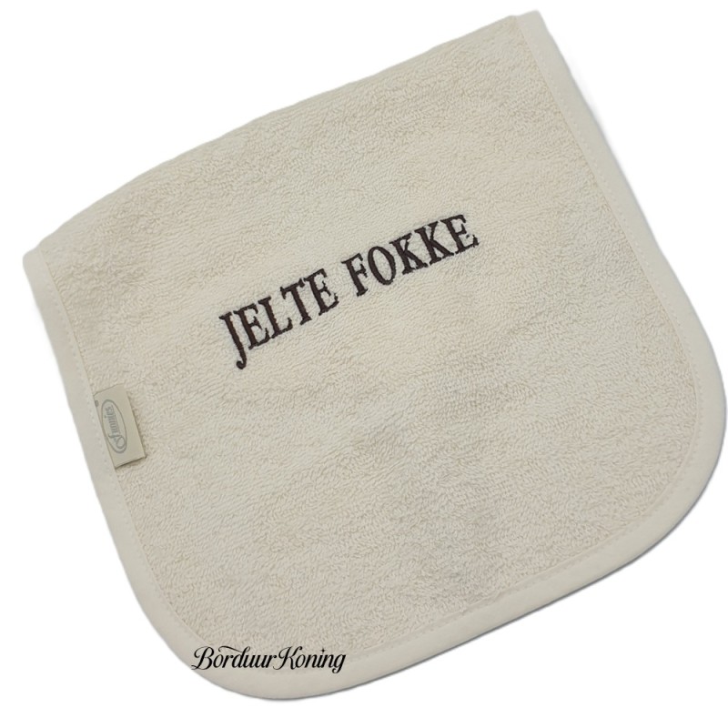 De slabber is los te verkrijgen of met naam tekst borduren.