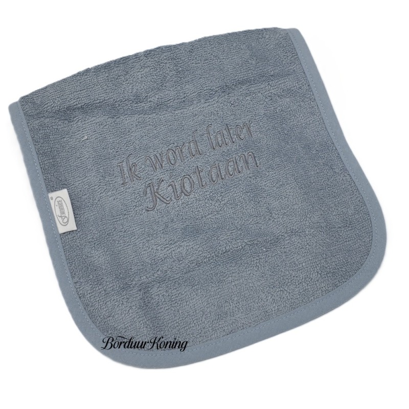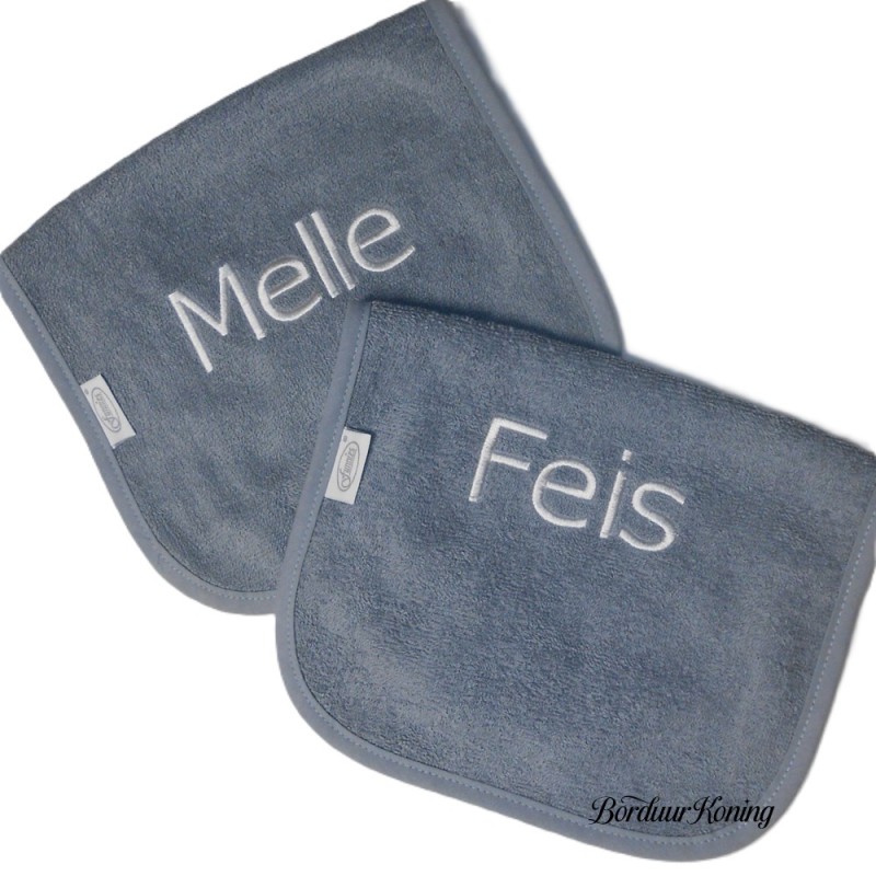 De slabber is los te verkrijgen of met naam tekst borduren.