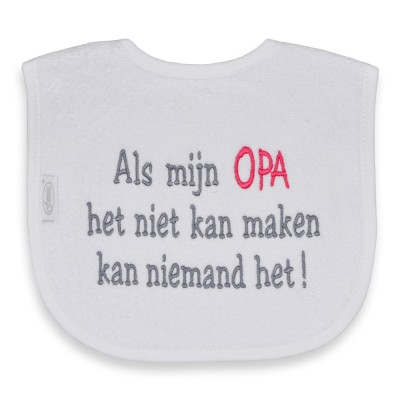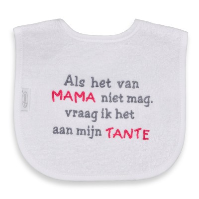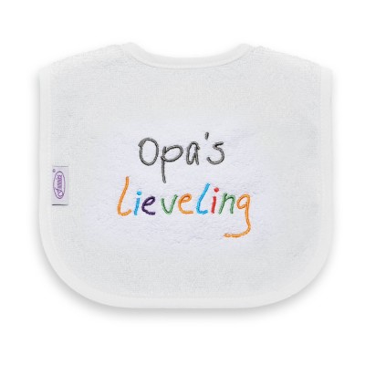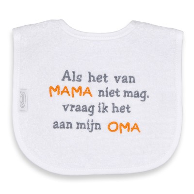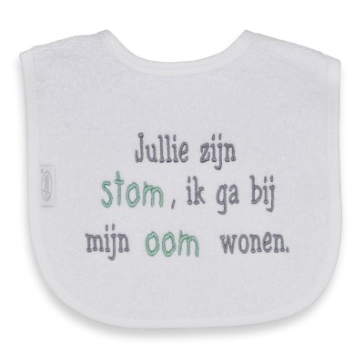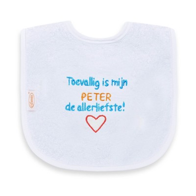 U kunt bij ons uiteraard ook een slabber met naam borduren of uw eigen originele tekst bedenken.