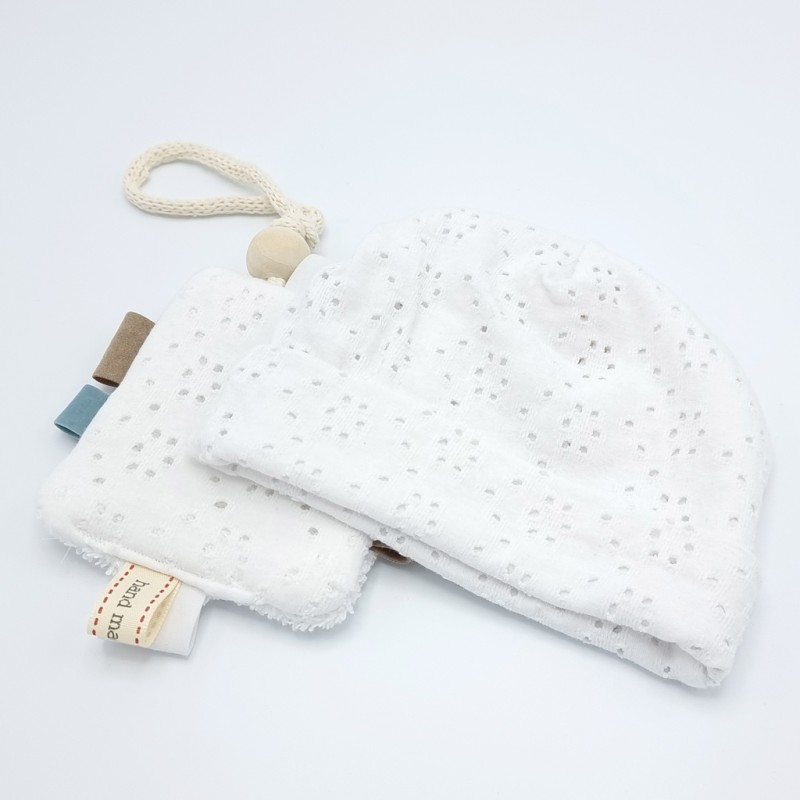 Babymuts wit broderie stof met speentut doekje losse verkoop of met naam borduren.