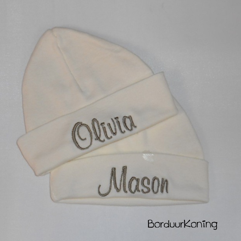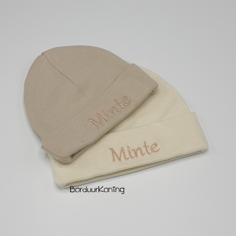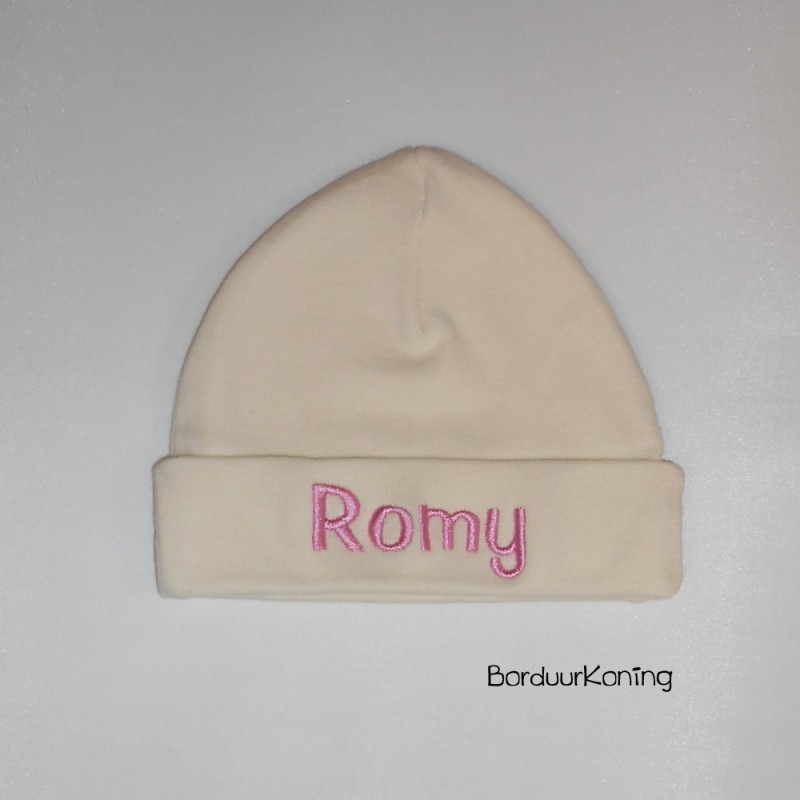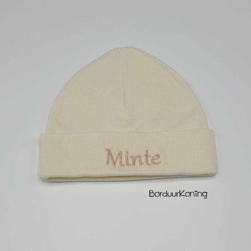 Babymuts ecru. Losse verkoop of met naam borduren.