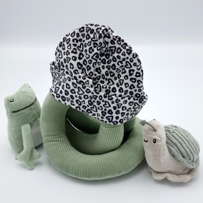 Babymuts wit met opdruk hartje luipaard zwart losse verkoop of met naam borduren.