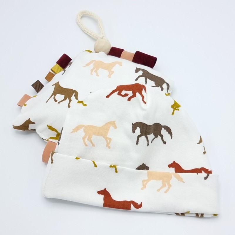 Babymuts wit met paard opdruk met speentut losse verkoop of met naam borduren.