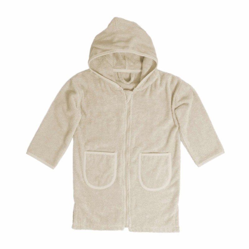 Badjas poncho voor de kleintjes, lekker makkelijk aan en uit doen rits aan de voorzijde in een mooie licht zand kleur