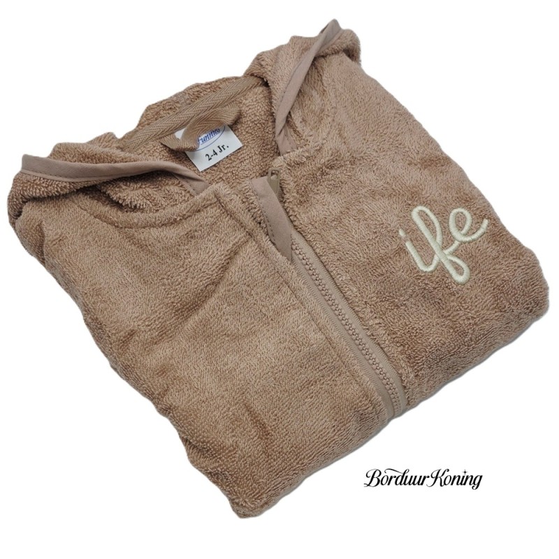 Wilt u het badjasje poncho niet geborduurd hebben, vul dan alleen de gewenste maat in en bij de keuze "Borduren op" kiest u voor: Niet borduren