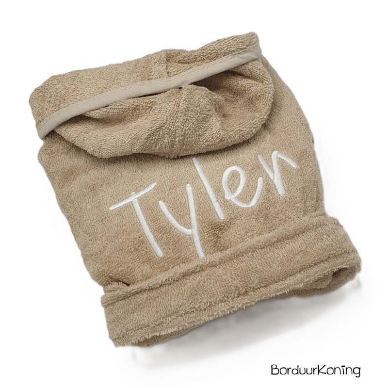 Badjasje beige met capuchon in de maat 1 tot 2 jaar (maat 86/92).