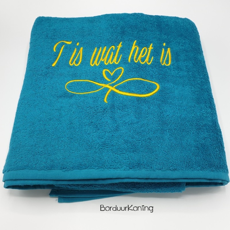 En om het helemaal af te maken, borduren wij uw naam (of andere tekst) er bij op.