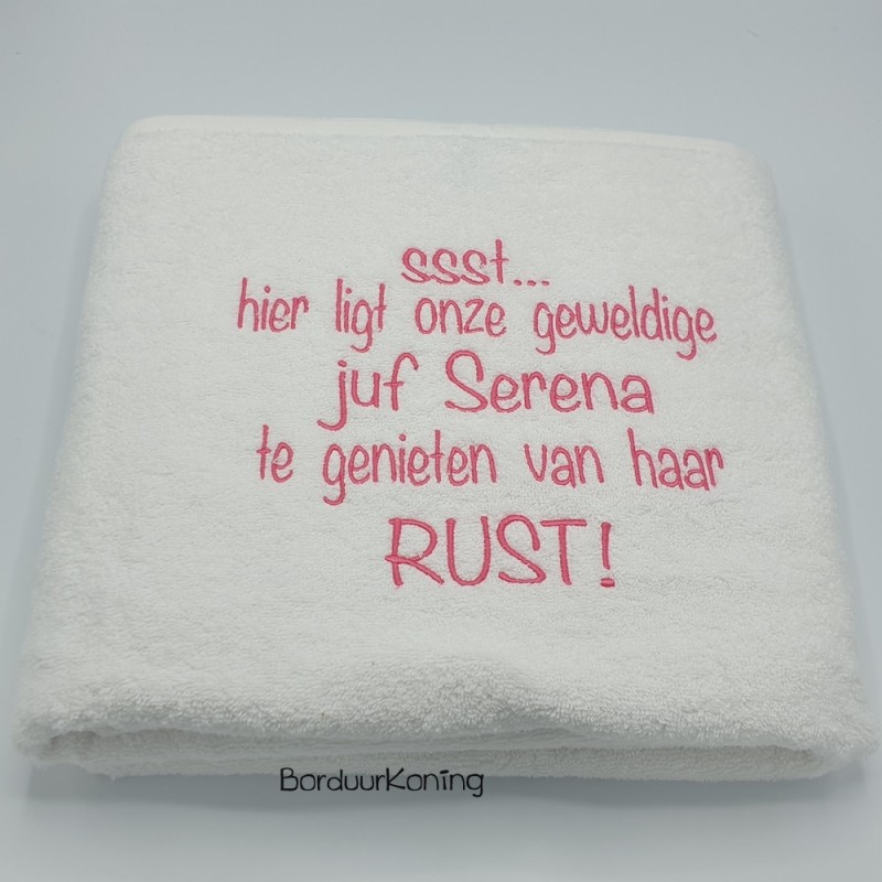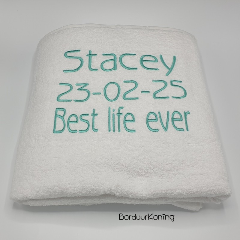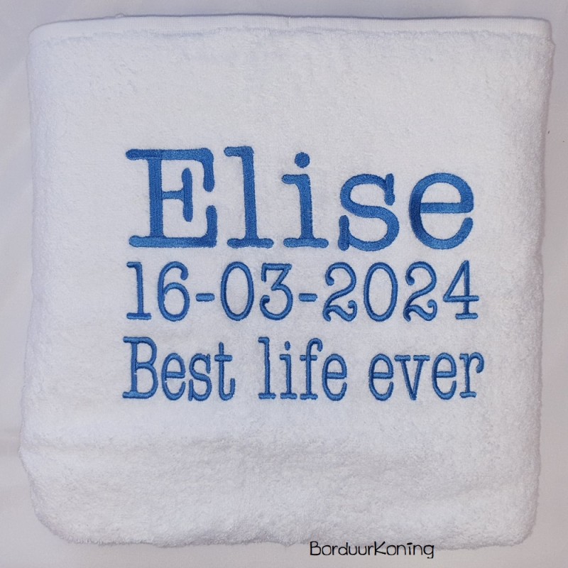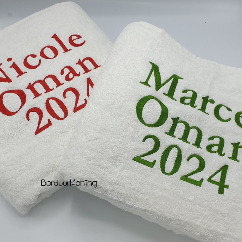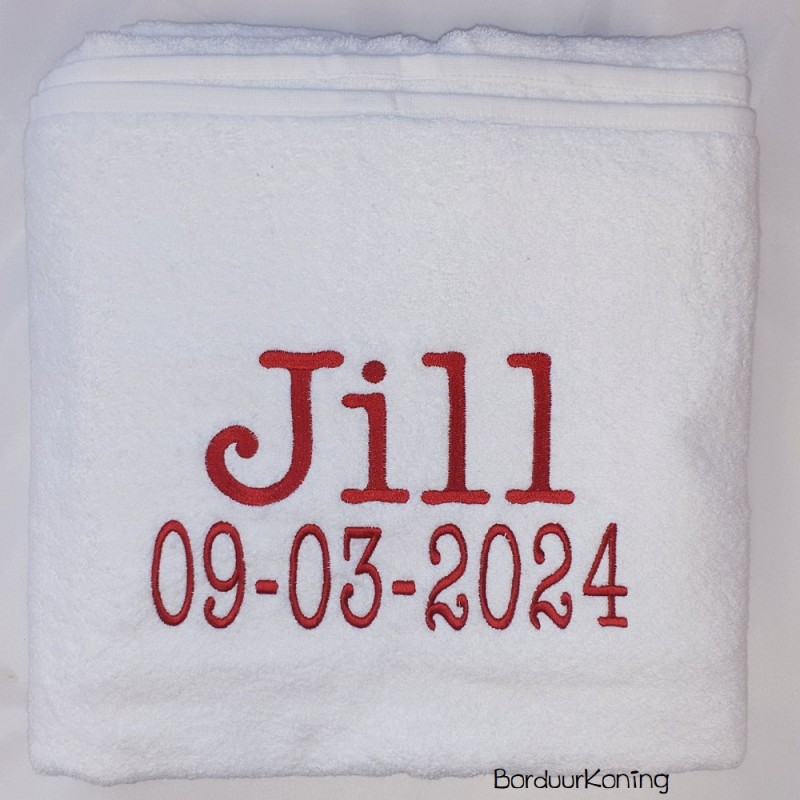 En om het helemaal af te maken, borduren wij uw naam (of andere tekst) er bij op.