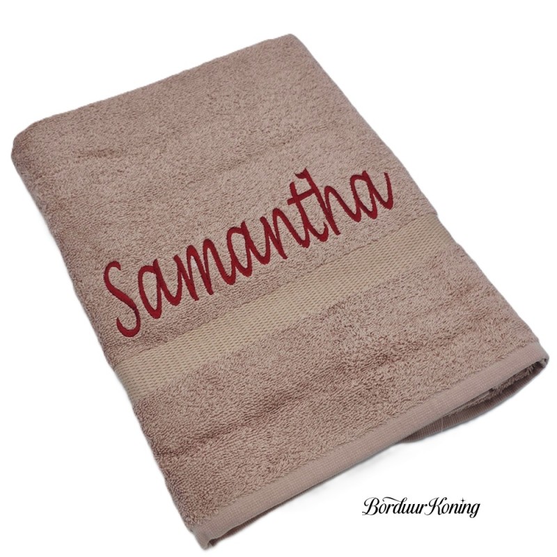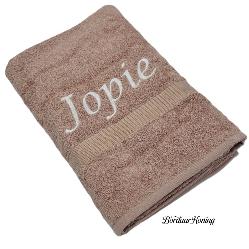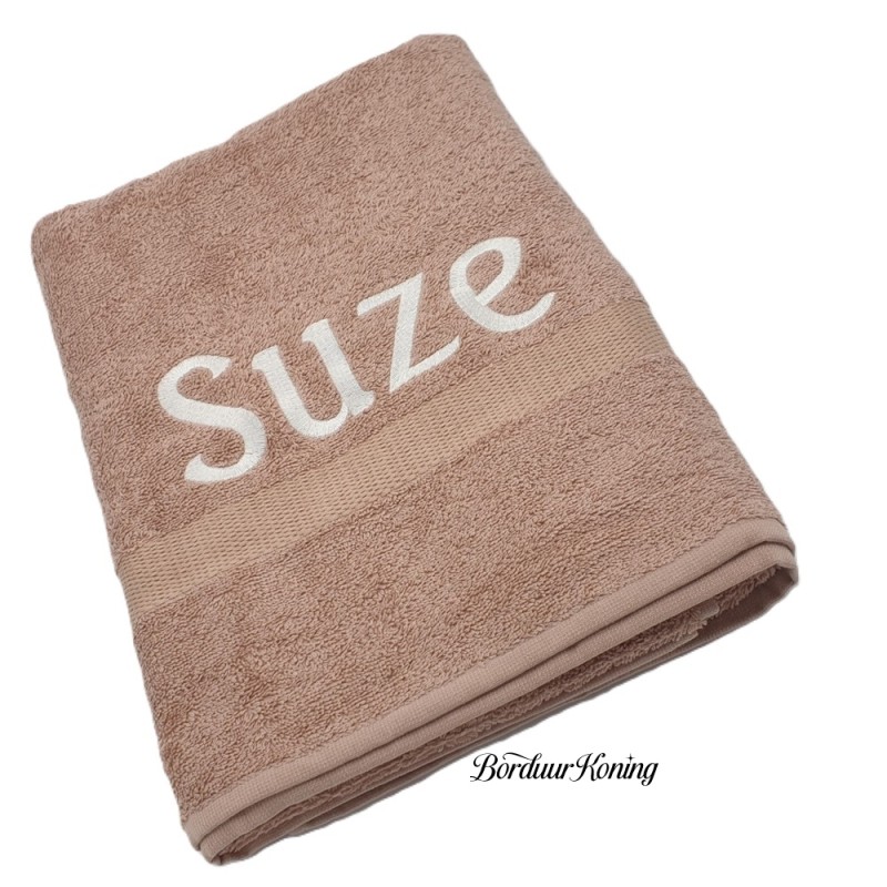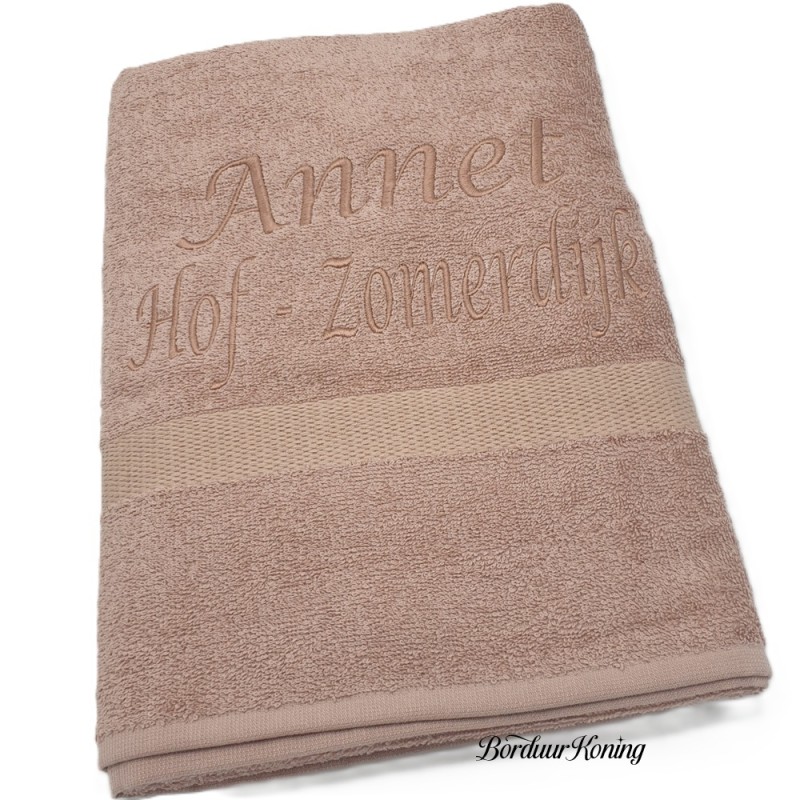 Douchelaken pinkstone, afmeting 70 x 140 cm, inclusief borduurwerk (1 regel).