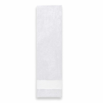 Sporthanddoek 30 x 140 cm met een gladde band van 15 cm breed voor de naam om te borduren.