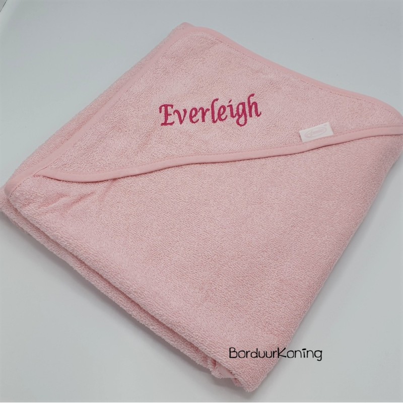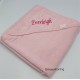 Badcape roze afmeting 100 x 100 cm losse verkoop of met borduurwerk.