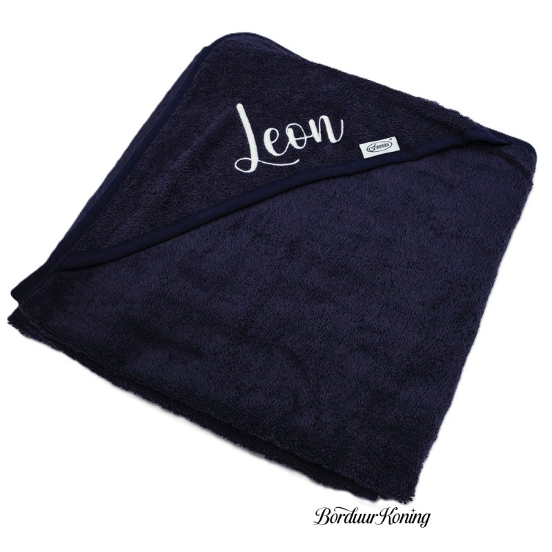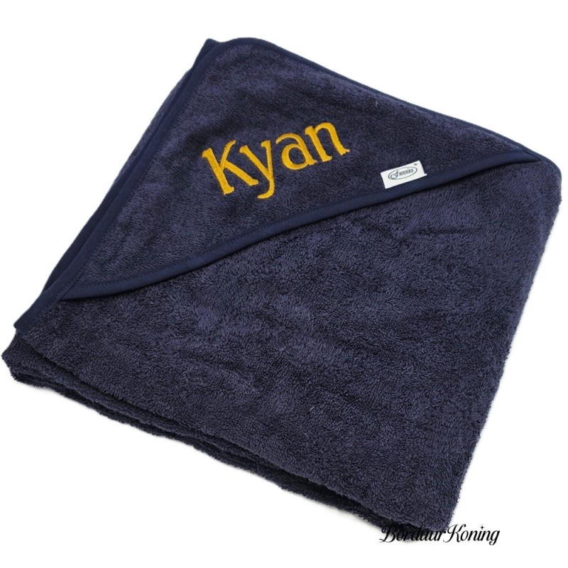 Badcape donkerblauw afmeting 100 x 100 cm losse verkoop of met borduurwerk.