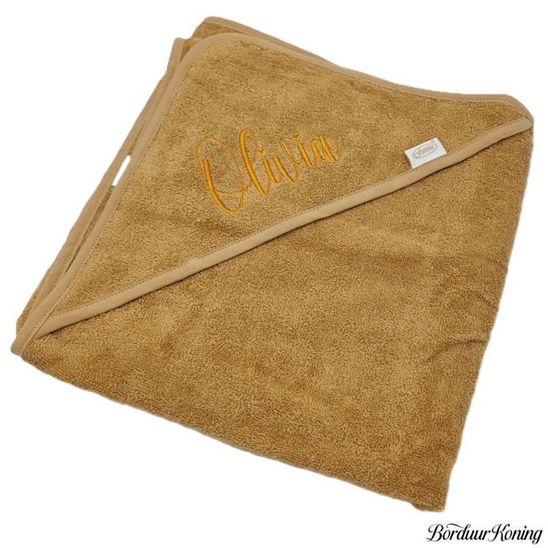 Badcape camel afmeting 100 x 100 cm losse verkoop of met borduurwerk.