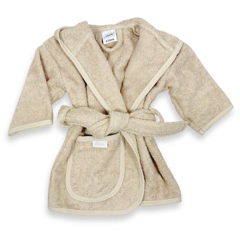 Badjasje beige met capuchon in de maat 1 tot 2 jaar (maat 86/92).