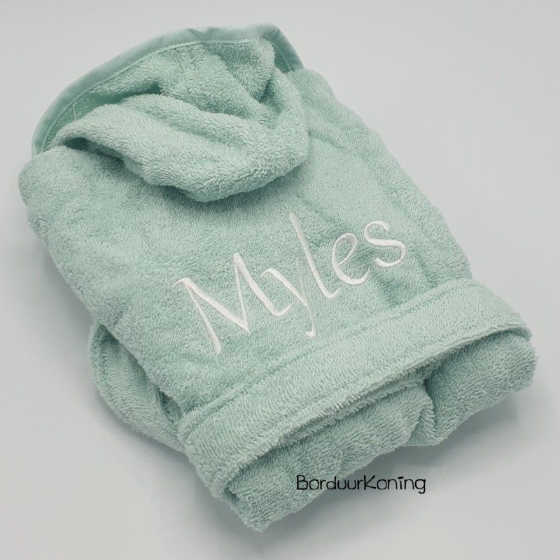 Badjasje mint met capuchon in de maat 1 tot 2 jaar (maat 86/92).