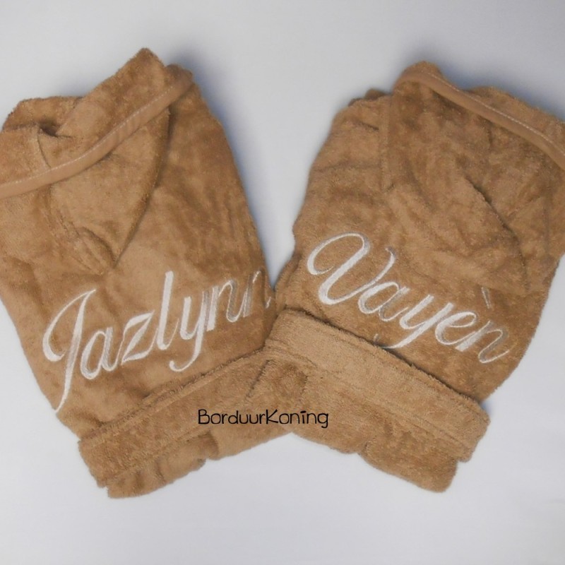Wilt u het badjasje niet geborduurd hebben, vul dan alleen bij de keuze "Borduren op" kiest u voor: Niet borduren