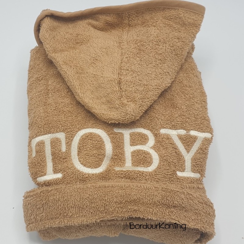 Badjas camel met capuchon in de maat 2 tot 4 jaar (maat 98/104).
