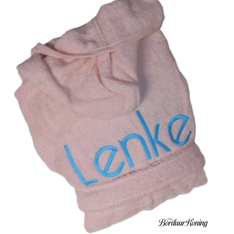 Badjas met capuchon blush in de maat 6 tot 8 jaar (maat 122/128).