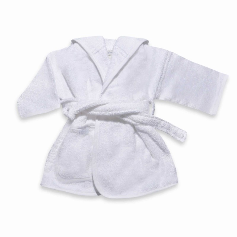 Badjas met capuchon wit in de maat 6 tot 8 jaar (maat 122/128).