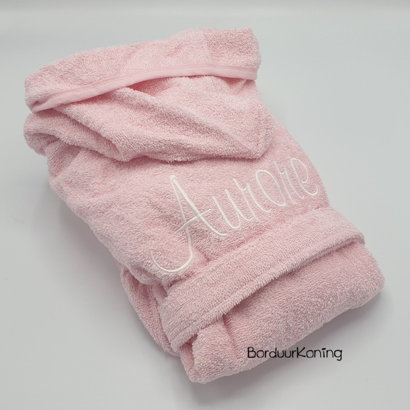 Badjas met capuchon roze in de maat 8 tot 10 jaar (maat 134/140).
