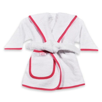 Baby badjasje wit met fuchsia bies in de maat 0 tot 12 maanden (maat 56/80). de laatste stuks