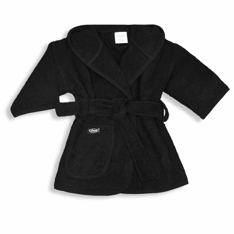 Baby badjasje zwart in de maat 0 tot 12 maanden (maat 56/80).