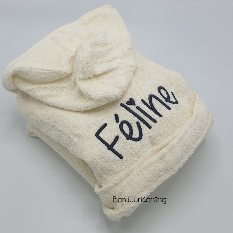 Badjas ecru met capuchon in de maat 4 tot 6 jaar (maat 110/116).