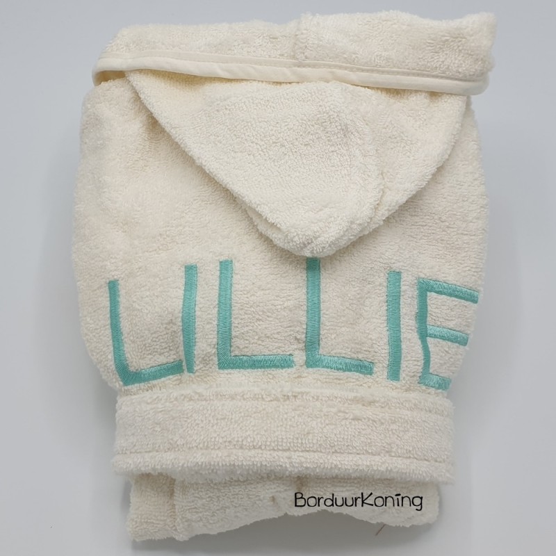 Wilt u het badjasje niet geborduurd hebben, vul dan alleen bij de keuze "Borduren op" kiest u voor: Niet borduren