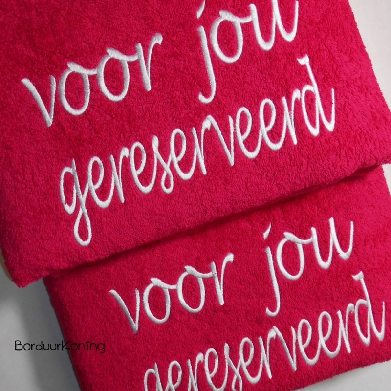 En om het helemaal af te maken, borduren wij uw naam (of andere tekst) er bij op.