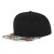 Zwarte 6-panel cap met ventilatiegaatjes, een platte klep en een authentieke sticker.