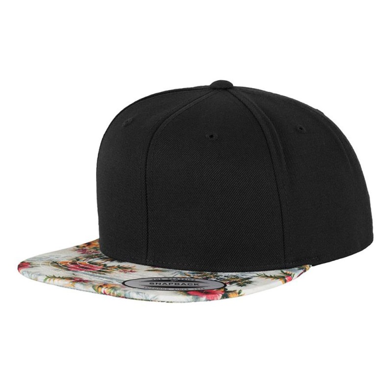 Snapback cap met bloemmotief in de kleuren mint en/of rood.