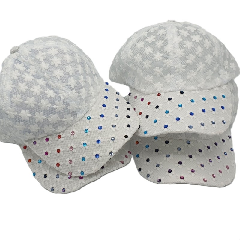 Dames cap van kant met glimmende steentje op de klep.