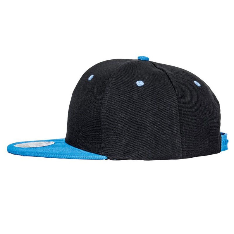 6-panel cap met ventilatiegaatjes, platte klep en retro kunststof sluiting aan de achterzijde.